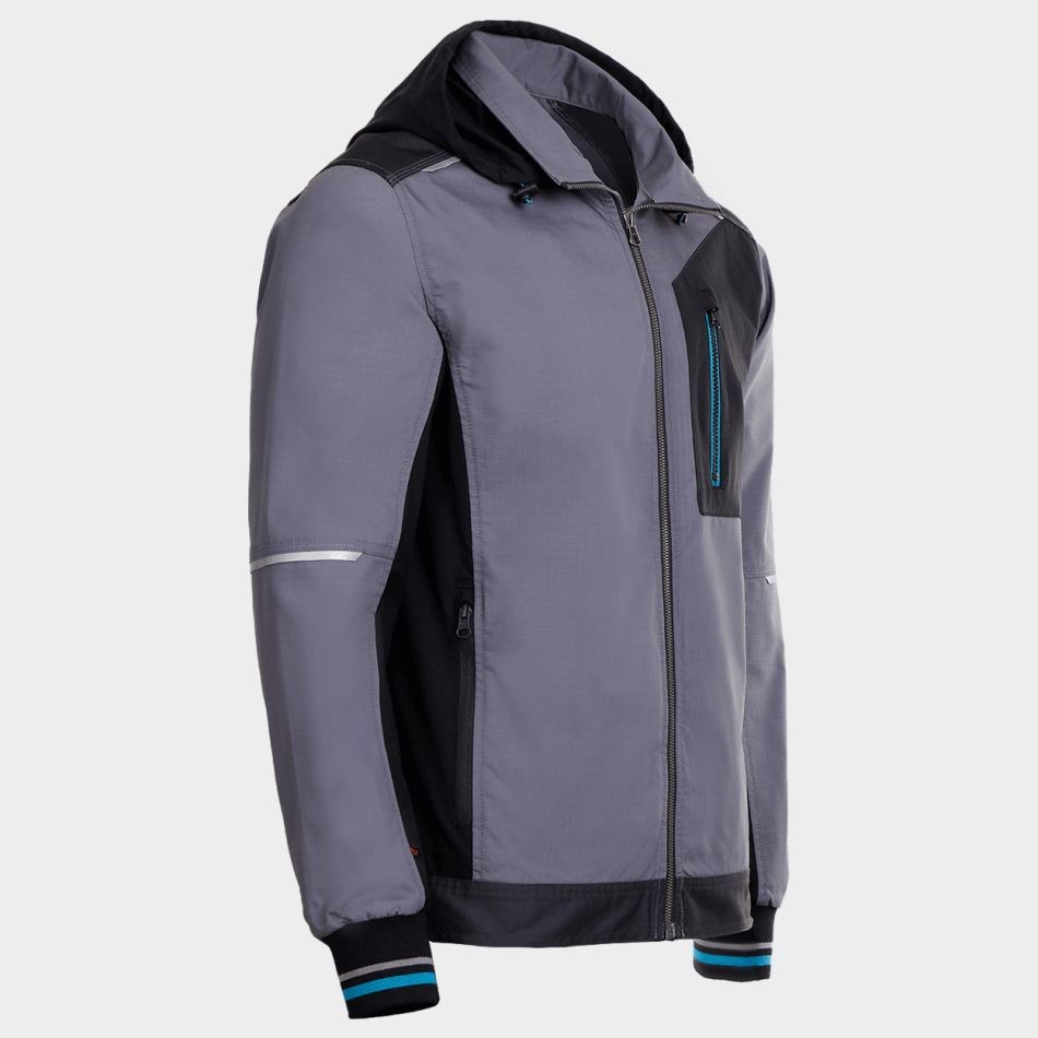 Работното яке разполага със сваляща се регулируема качулка. Връзките позволяват пристягане. Закопчаването отпред е с цип YKK®. Моделът разполага с два странични джоба и един нагръден, всички с ципове. Маншетите на ръкавите са еластични, а коланът може да се регулира с копчета. Има подсилени части и светлоотразителни елементи.