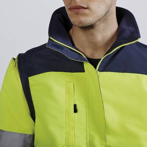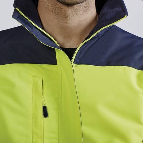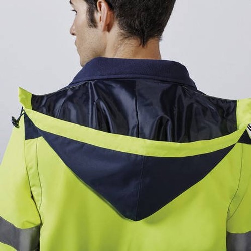 ADR Работната светлоотразителна полушуба е изработена от външен плат 100% водоустойчив полиестер с плътност 220 гр/м2 и подплата 100% Полиестер с плътност 65 г/м2 и полиестерна вата с плътност 110 гр/м2. Шубата разполага с двоб на гърдите който се закопчава с цип, два предни наклонени джоба в долния край и вътрешен джоб. Качулката и долния край на шубата могат да се пристягат с ластик. Якето е с два светлоотразителни ленти на ръкавите и на тялото. Ръкавите са свялящи се. Парката е ветро и водоустойчива много здрава и топла.