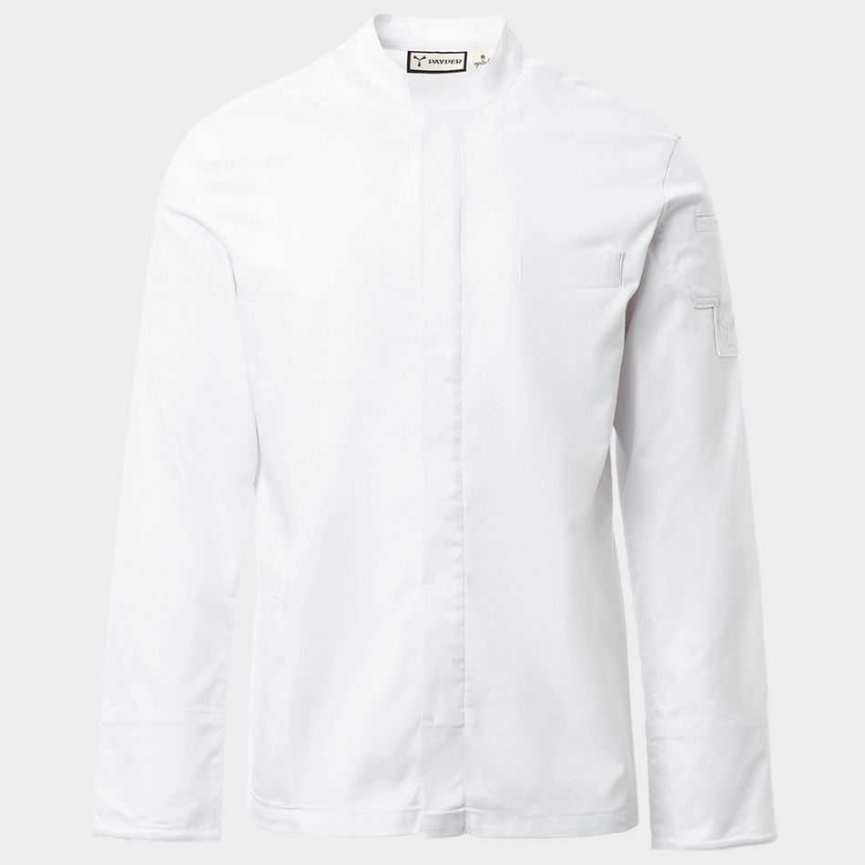 Професионална готварска туника PAYPER SUPREME с яка тип „столче“, изработена от памучен кепър и Lycra® T400® за отлична еластичност и дишаемост. Моделът разполага с тик-так копчета, навиващи се ръкави, мрежеста материя под мишниците, джобове за химикал, смартфон и аксесоари, както и цепки за свобода на движение. Идеален избор за комфорт и стил в професионалната кухня.