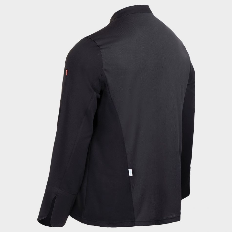Гърбът на туниката е изработен от иновативна дишаща материя Coolmax, която регулира температурата на тялото и отвежда влагата, осигурявайки максимален комфорт през целия работен ден. Това я прави особено подходяща за динамичната и натоварена среда на професионалната кухня, където удобството и свободата на движение са от съществено значение.
